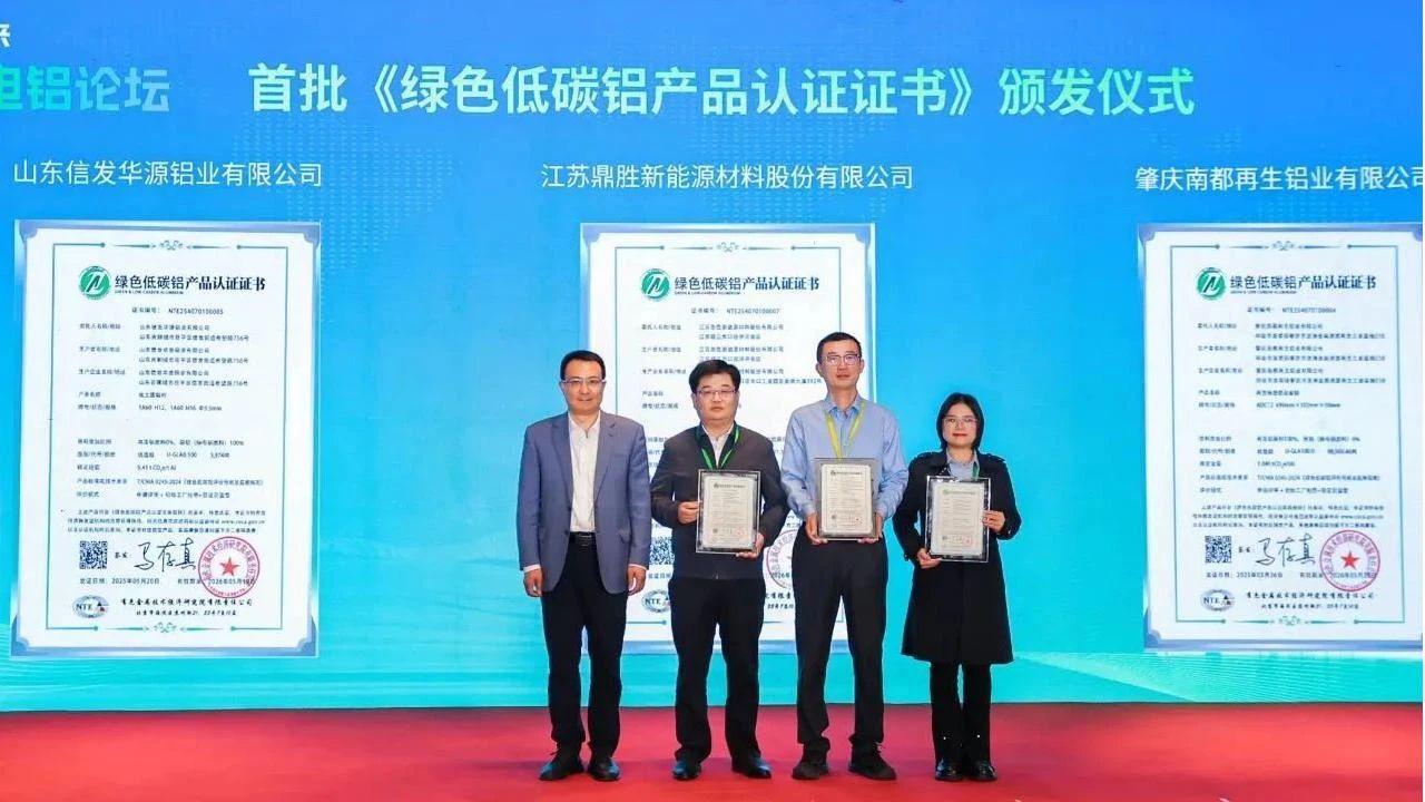 鼎胜新材获首批绿色低碳铝认证